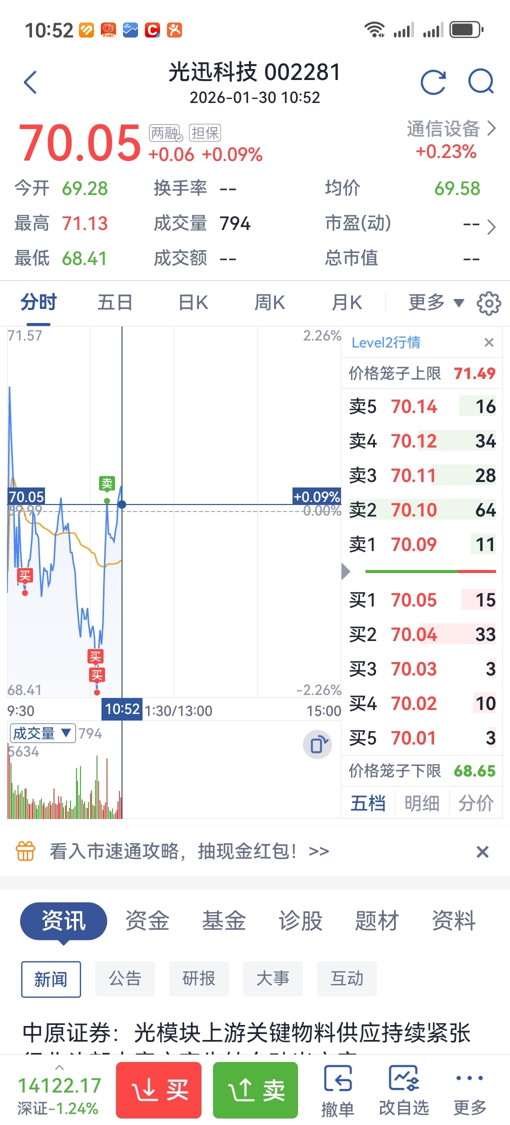 $光迅科技(SZ002281)$ 别怕,底下有人买