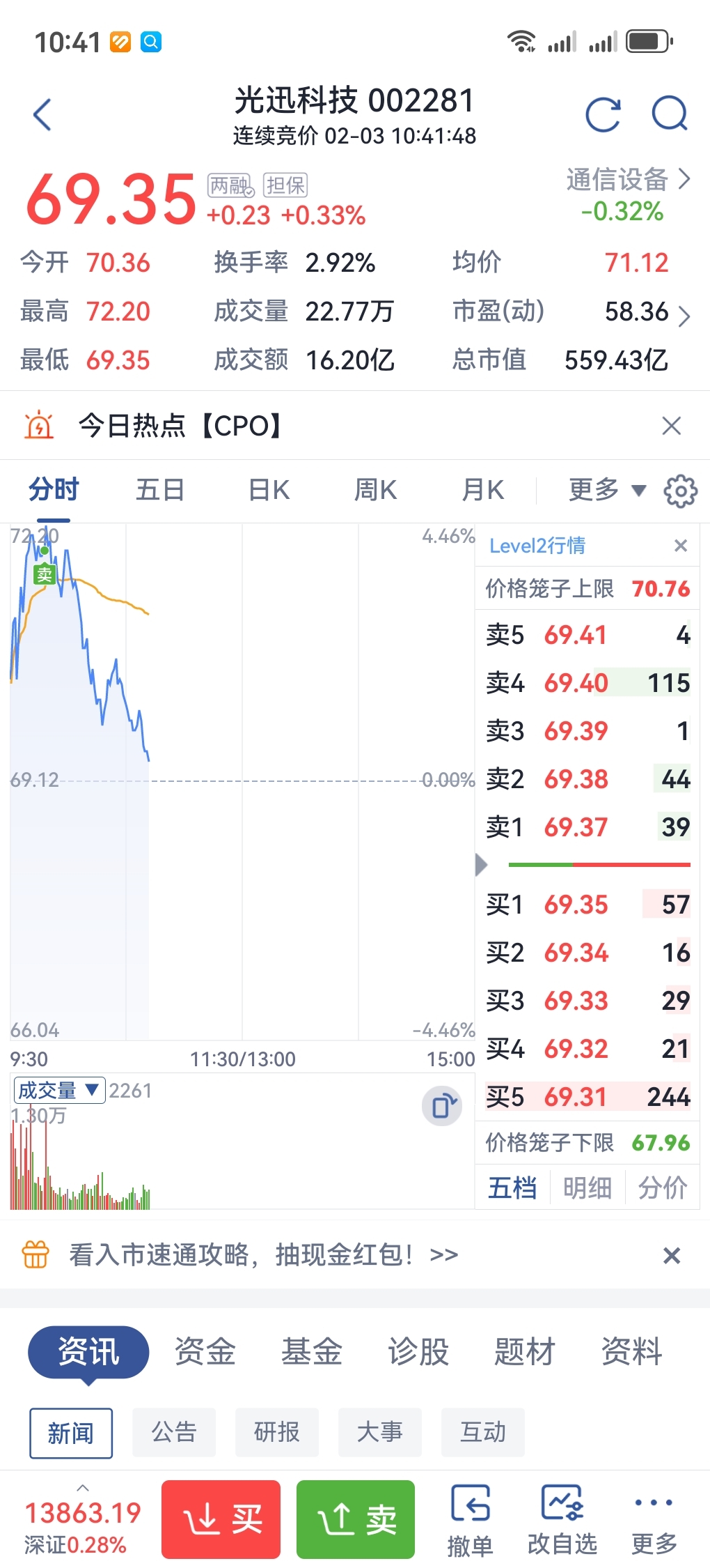 $光迅科技(SZ002281)$ 先把仓位腾下来,一会再买上去