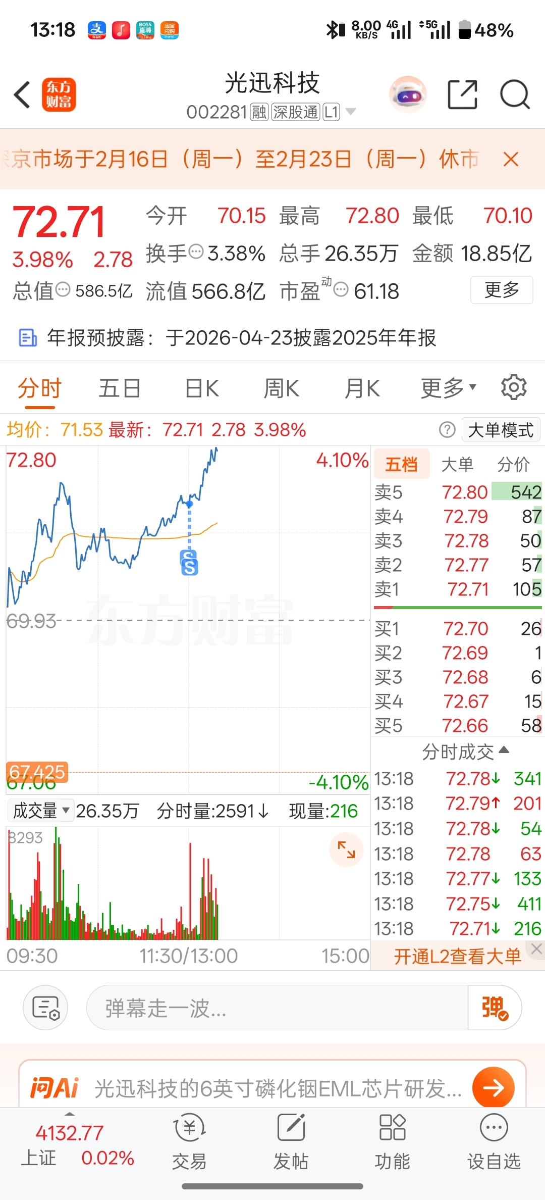 $光迅科技(SZ002281)$ 总感觉我的交易有点问题