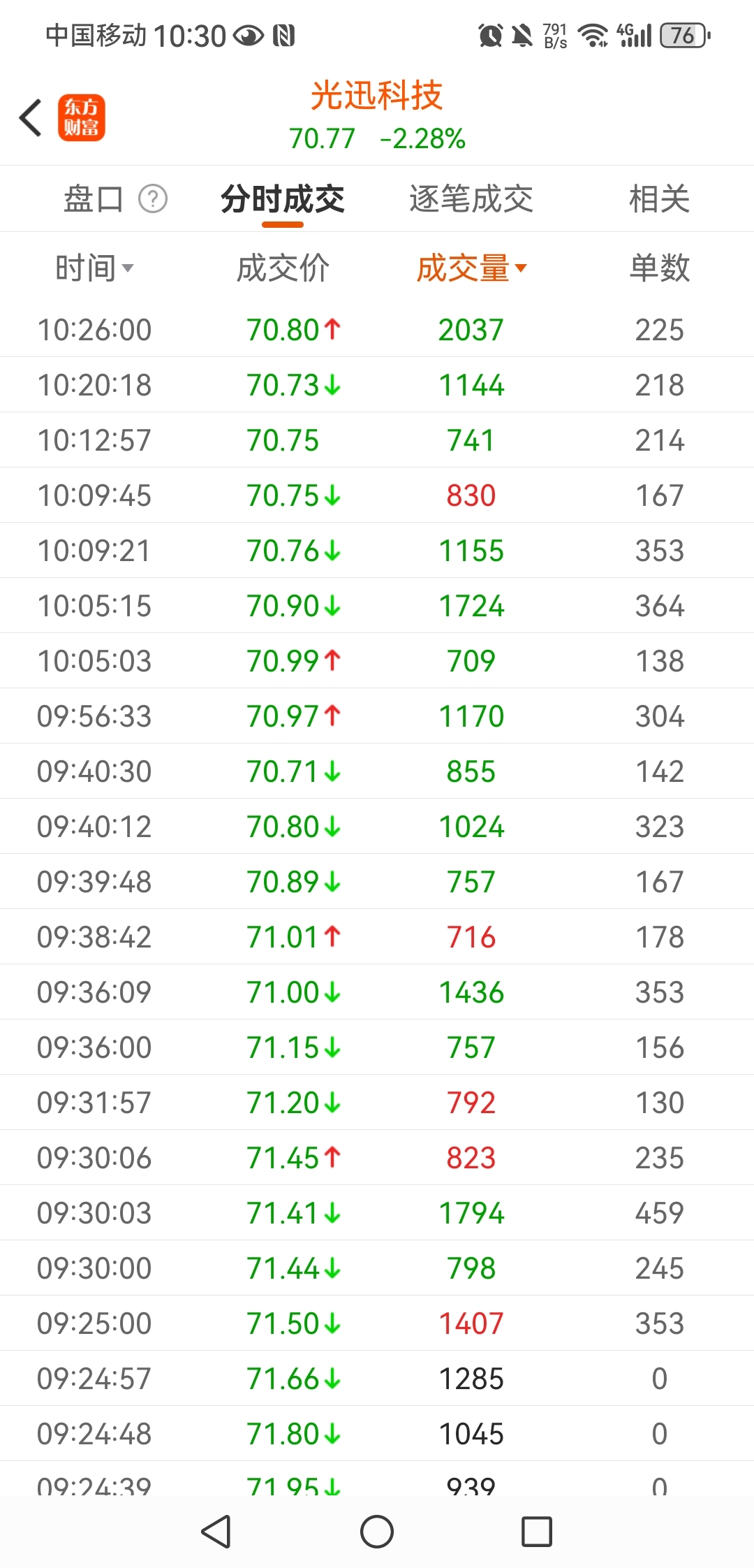 $光迅科技(SZ002281)$ 一首凉凉送给自己全是量化卖盘