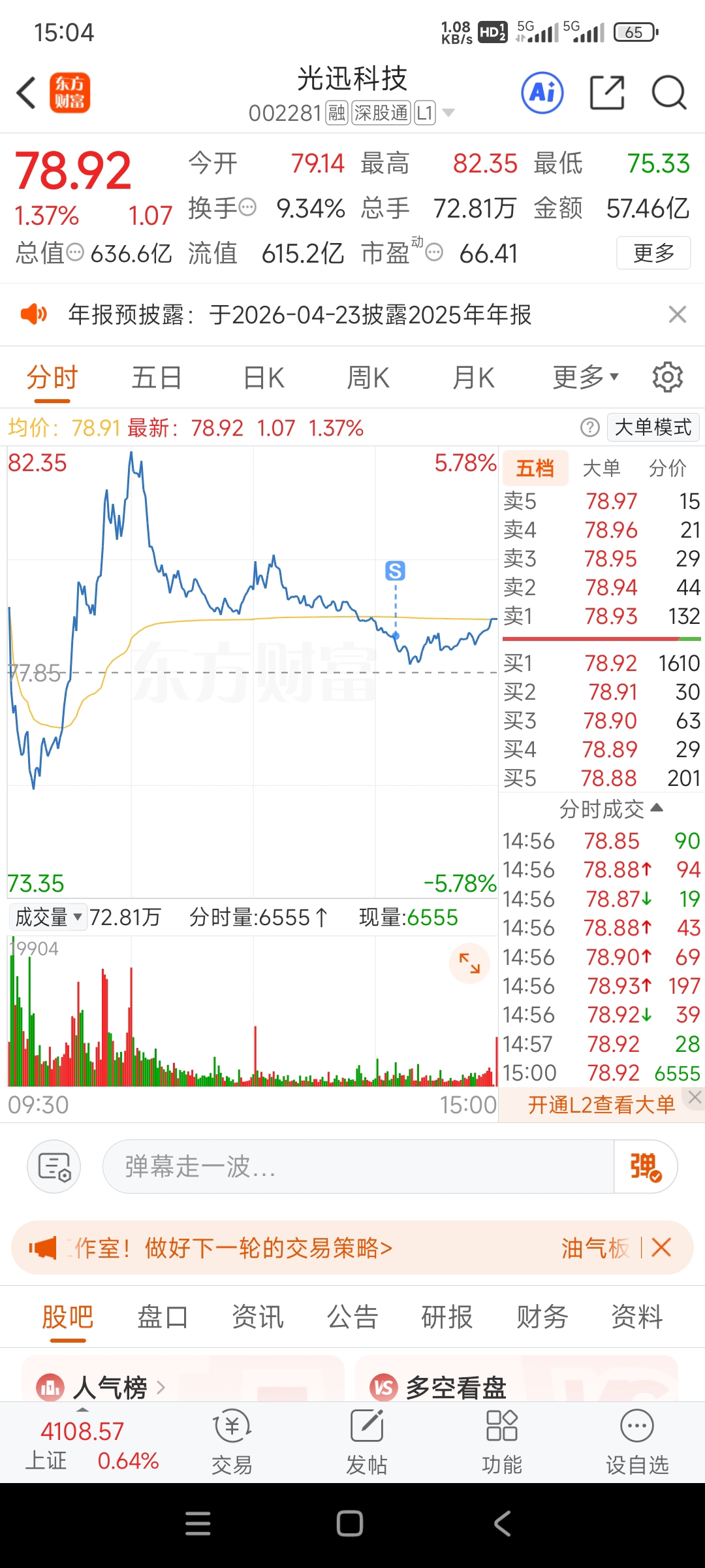 $光迅科技(SZ002281)$ 走了,天天冲高回落,还是怕了,拿捏不了一点。