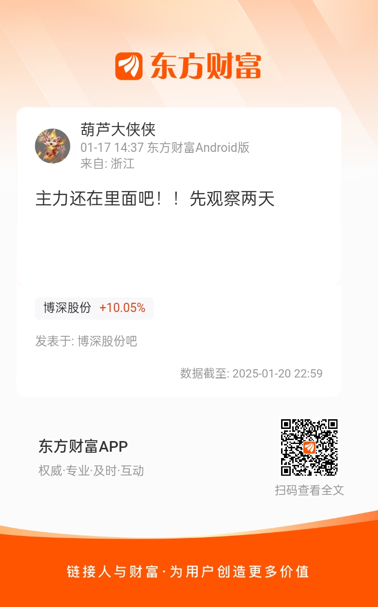 温馨提示: 1.根据《证券法》规定,禁止编造、传播虚假信息或者误导性信息,扰乱证券市场;2.用户在本社区发表的所有资料、言论等仅代表个人观点,与本网站立场无关,不对您构成任何投资建议。用户应基于自己的独立判断,自行决定证券投资并承担相应风险。《东方财富社区管理规定》