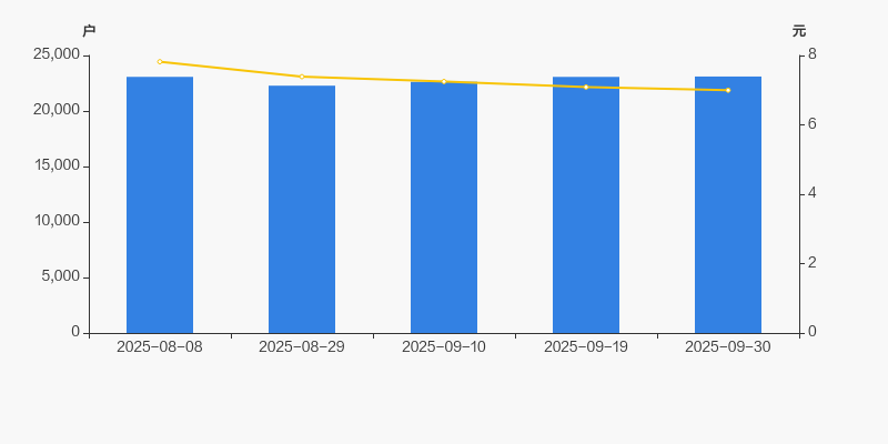自2025年8月29日以来,公司股东户数连续3期上涨,截至目前增幅为3.71%。2025年8月29日至2025年9月30日区间股价下降5.28%。