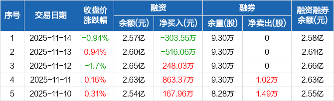 天润工业:融资净偿还303.55万元,融资余额2.57亿元(11-14)