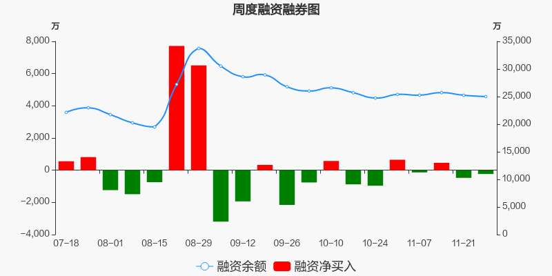 天润工业本周(2025/11/24-2025/11/28)累计涨幅达1.68%,截至11月28日最新股价报收6.05元。从增量上来看,11月24日至11月27日融资买入交易规模1806.49万元,融资偿还规模2041.65万元,期内融资净偿还235.16万元。从存量上来看,截止11月30日,天润工业融资融券余额2.5亿元,其中融资余额规模2.5亿元,融券余额规模23.7万元。