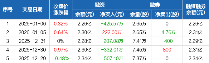 天润工业:融资净偿还425.57万元,融资余额2.26亿元(01-06)