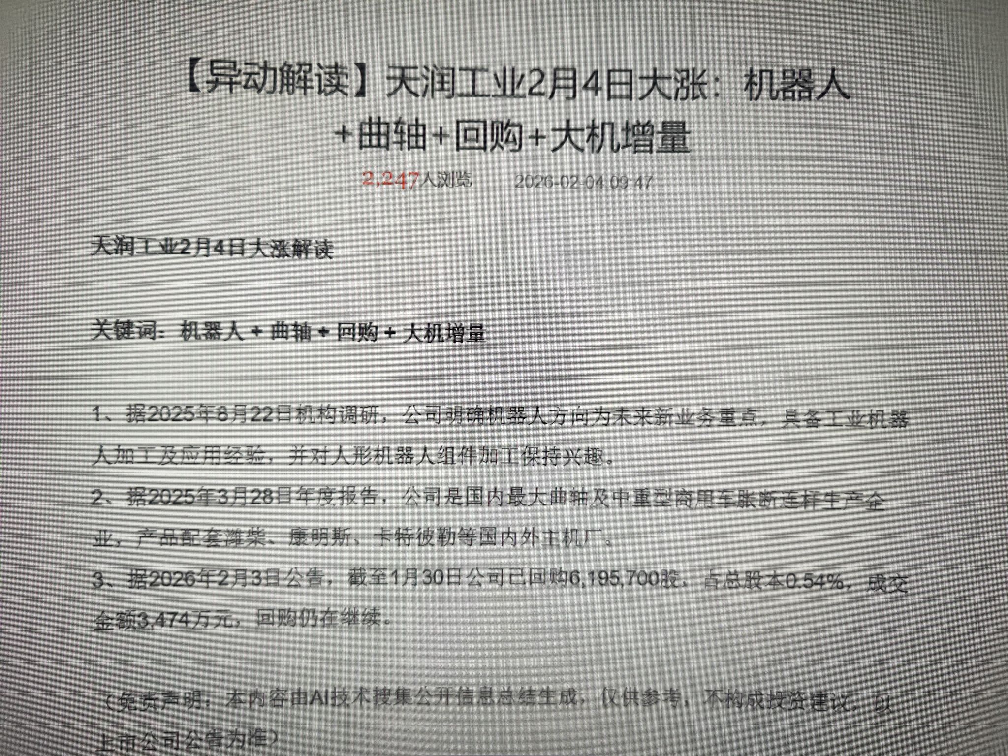$天润工业(SZ002283)$ 都拿住吧,龙头企业!去查查技术多牛逼,都是适配现在的高精尖企业的!爱走走爱留留,天润绝对值得等待!别忘了,以后是工业机器人的天下,而不是人形机器人!工业机器人可以无间断的24小时工作,这就是未来可期的!