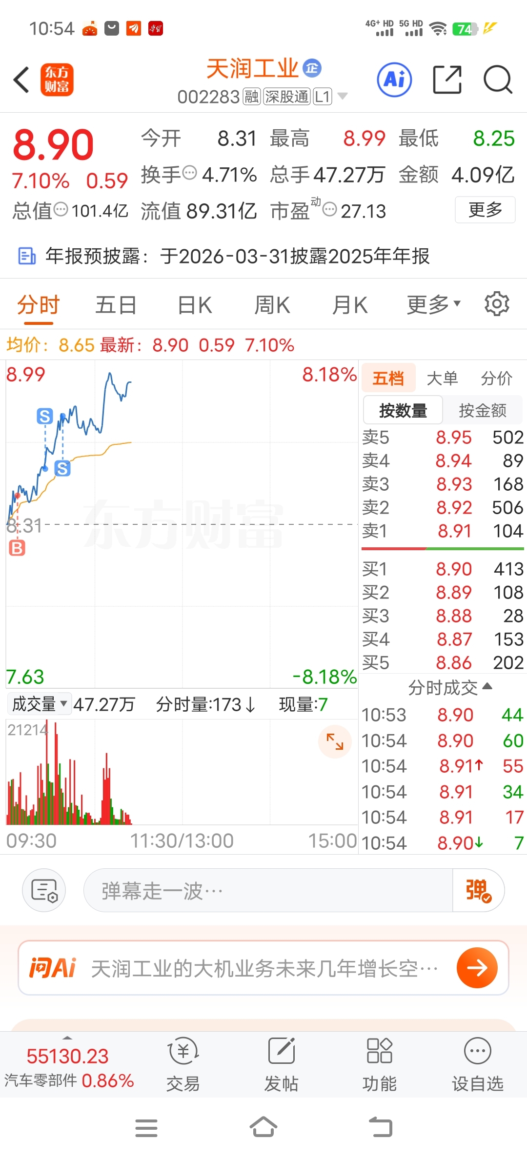 $天润工业(SZ002283)$ 反向做t,哈哈