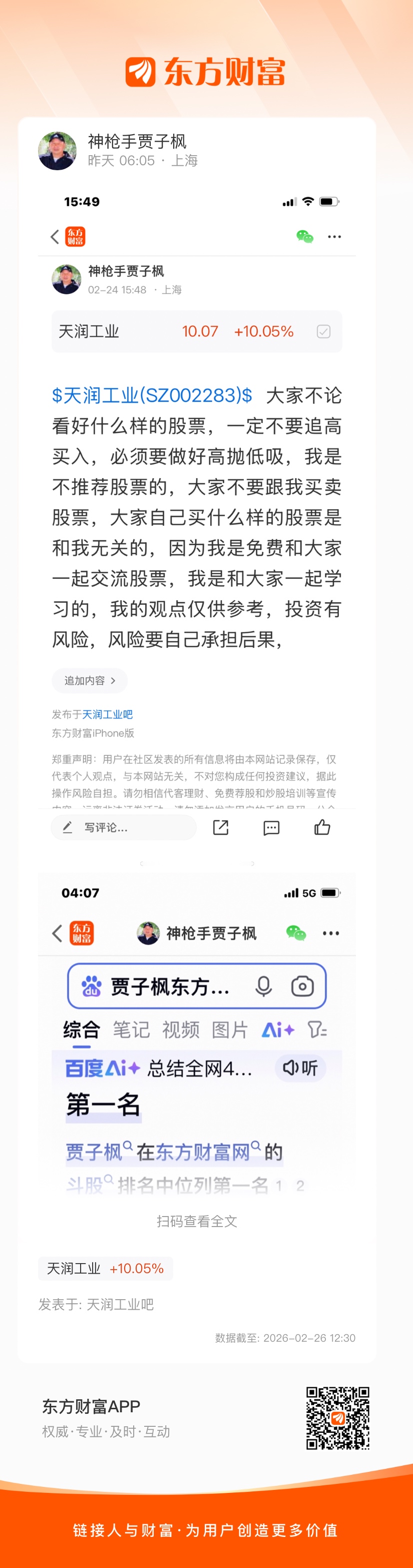 $天润工业(SZ002283)$ 贾子枫老师厉害的