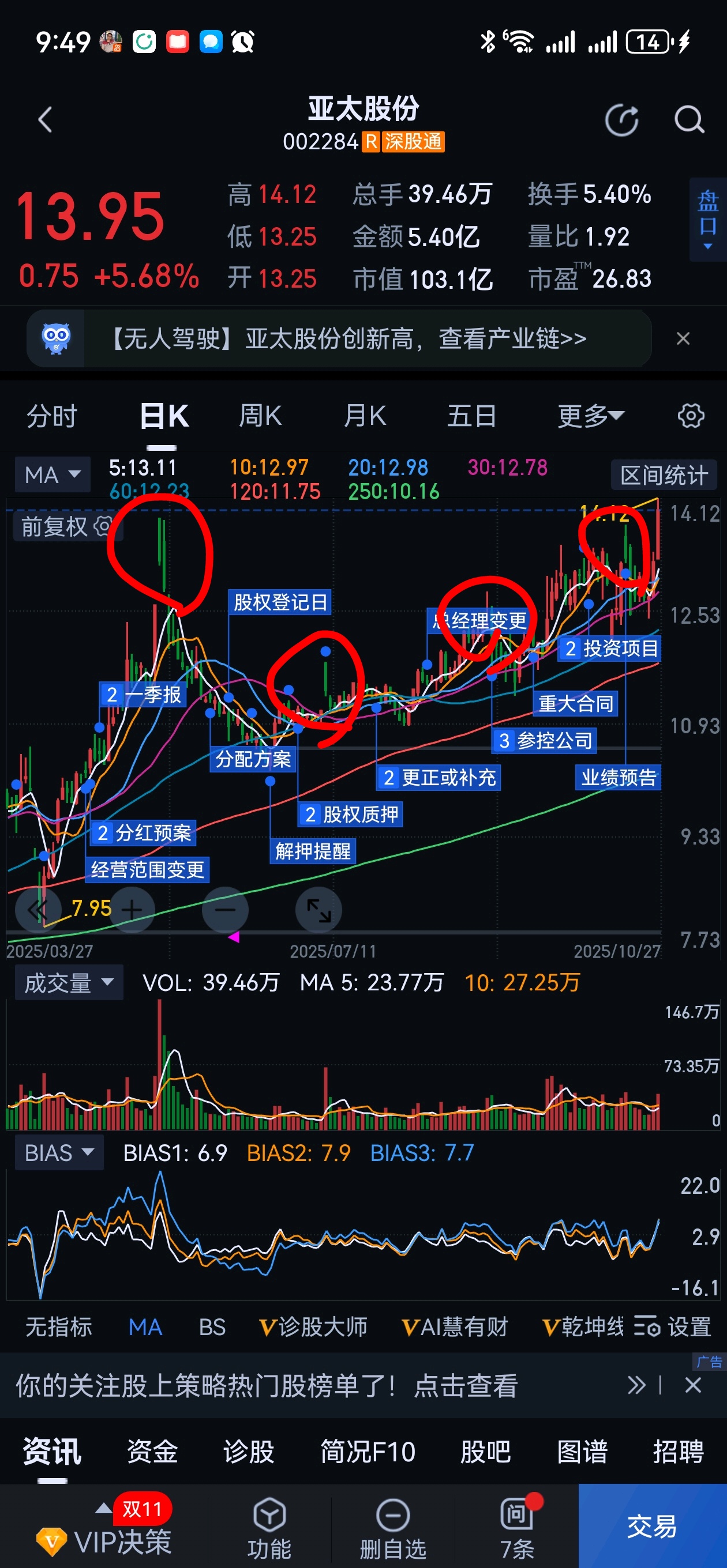 $亚太股份(SZ002284)$ 明天保持淡定啊,集合竞价不要怼涨停,更不要弄高开,高开一定惨die,想让亚太走的长远,就不要弄成高开很多或者涨停板,明天要是高开太多,资金砸的你们找不着北!!看看以往的表现,高开必die!高开必死!短则调整一个星期,长则2个月,提醒大家了啊,不要自己找死啊!