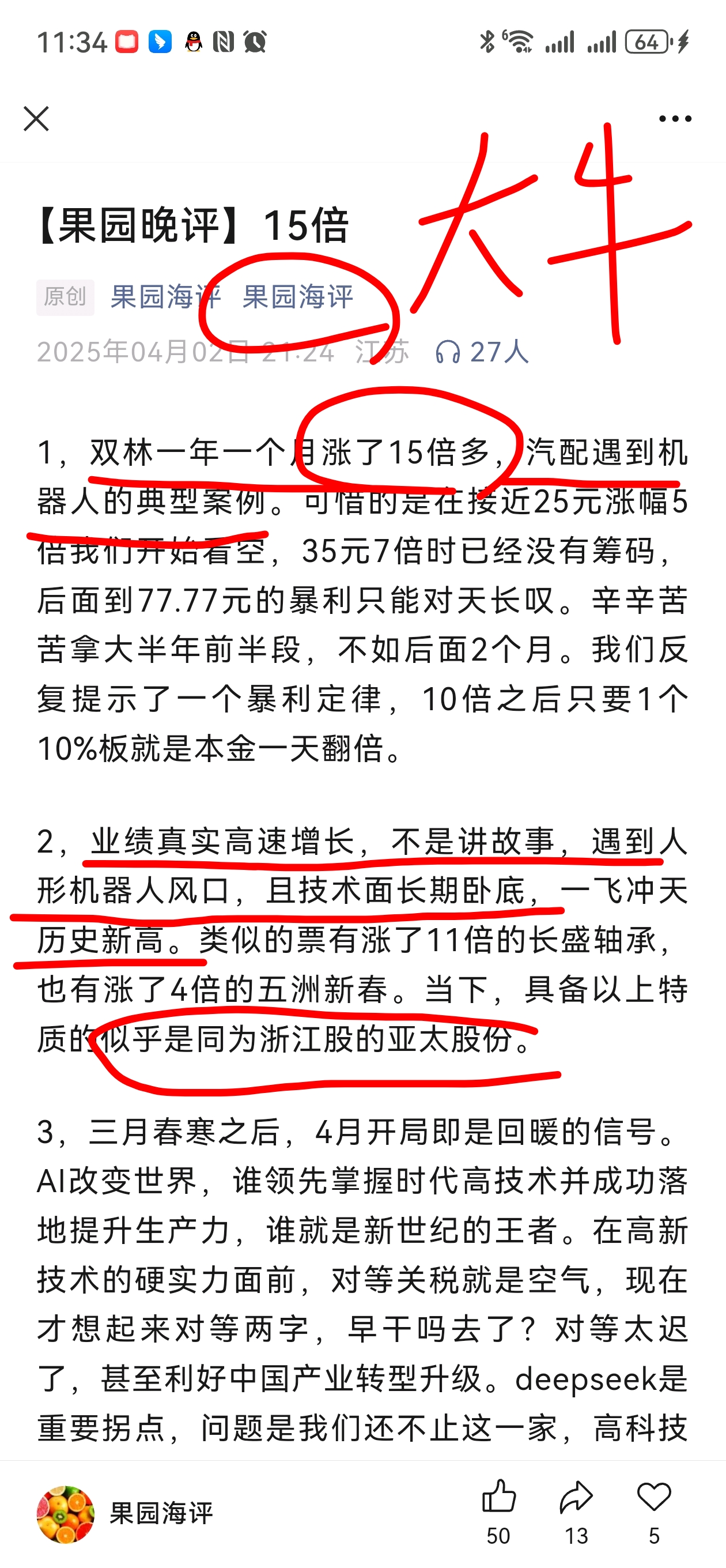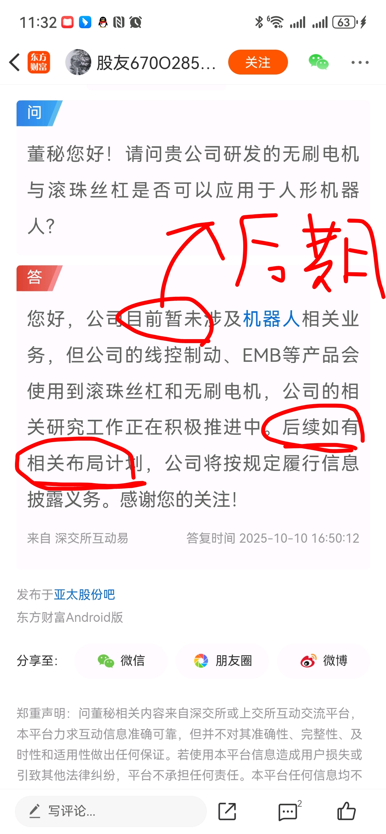 $亚太股份(SZ002284)$ 通过董秘的回复,以及股市大牛的的分析,亚太后续的最大预期差就是官宣机器人,有预期就有上涨动力,大资金肯定会调研的,会反映到股价上的,咱们拭目以待!当然,机器人是一方面,还有摩洛哥的全球化进程,奇瑞的飞鱼底盘单元i 都是爆发点!等待资金的发掘和跟进!