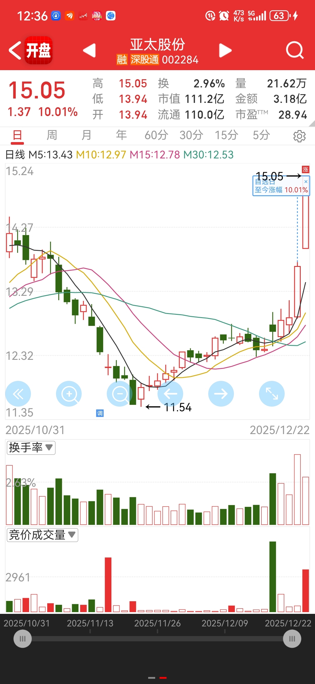 $亚太股份(SZ002284)$ 昨晚刚加自选,还没来得及上车就涨停了