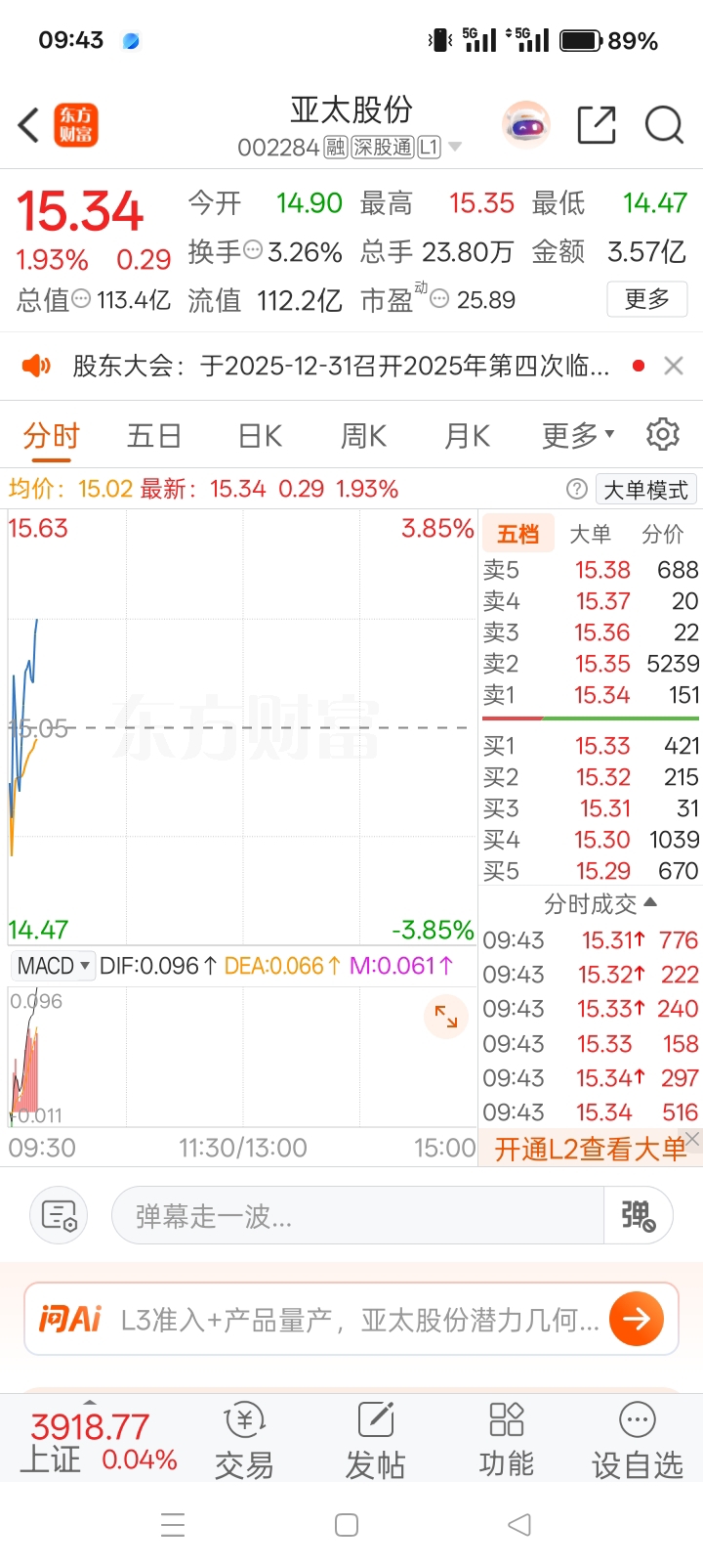 $亚太股份(SZ002284)$ 破前期新高,继续雄起,亚太大佬,兄弟们,上车开怼!!等待吃肉!