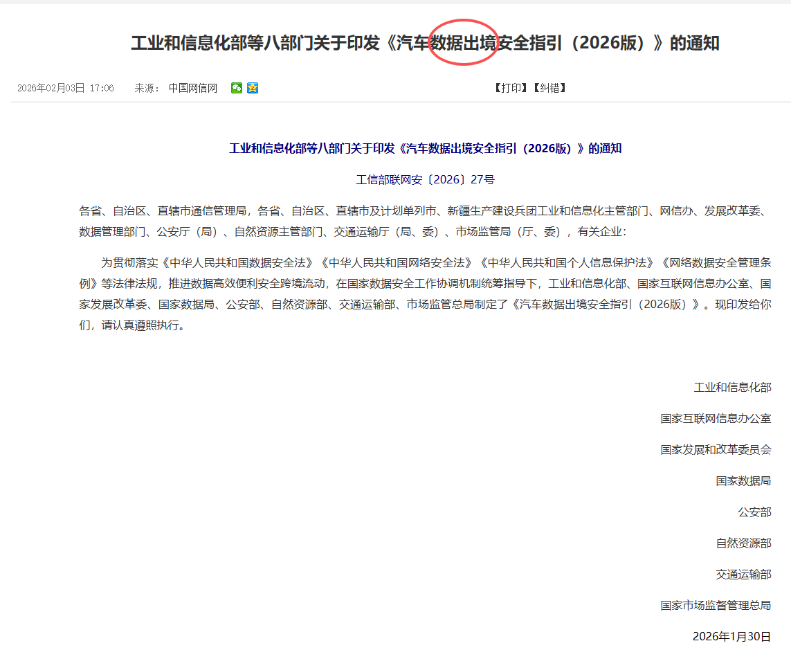 《汽车数据出境安全指引(2026版)》特斯拉FSD入华倒计时开启!