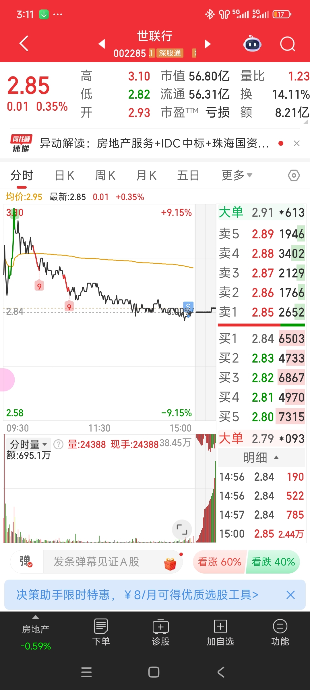$世联行(SZ002285)$ 还有我!