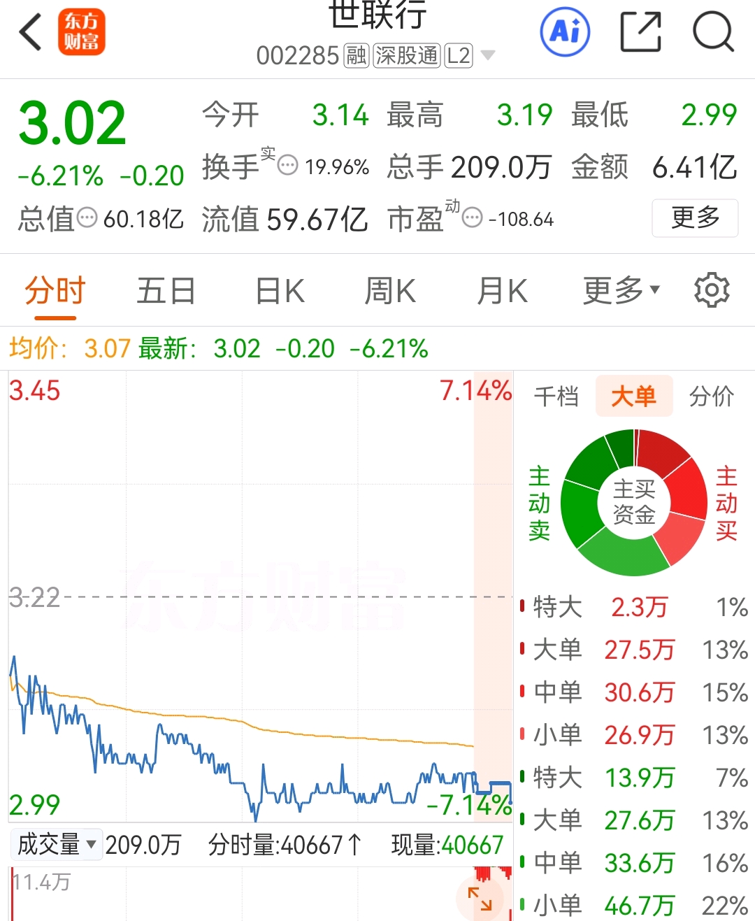 $世联行(SZ002285)$ 全层级主动卖单(特大、大、中小单)集体碾压买单,自己看图