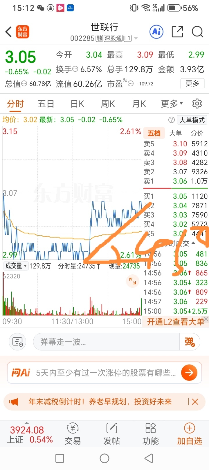 $世联行(SZ002285)$ 主力下午温和吸筹并维护技术形态,为明天拉升博奕而准备!这就是今天积极的盘面,留下一个缩量红十字