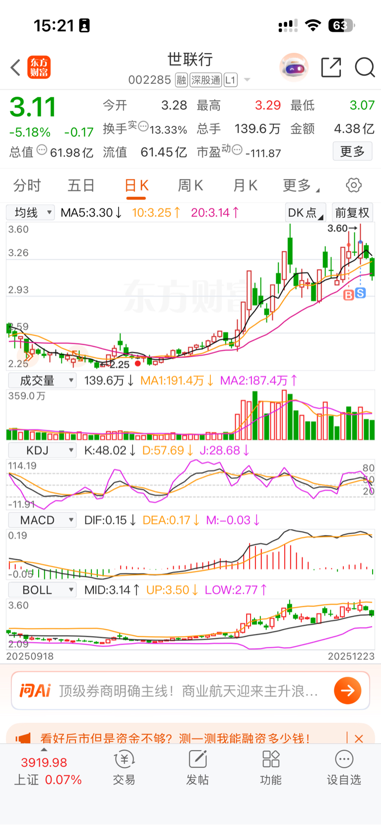 $世联行(SZ002285)$ 就没一个人看懂是双顶吗
