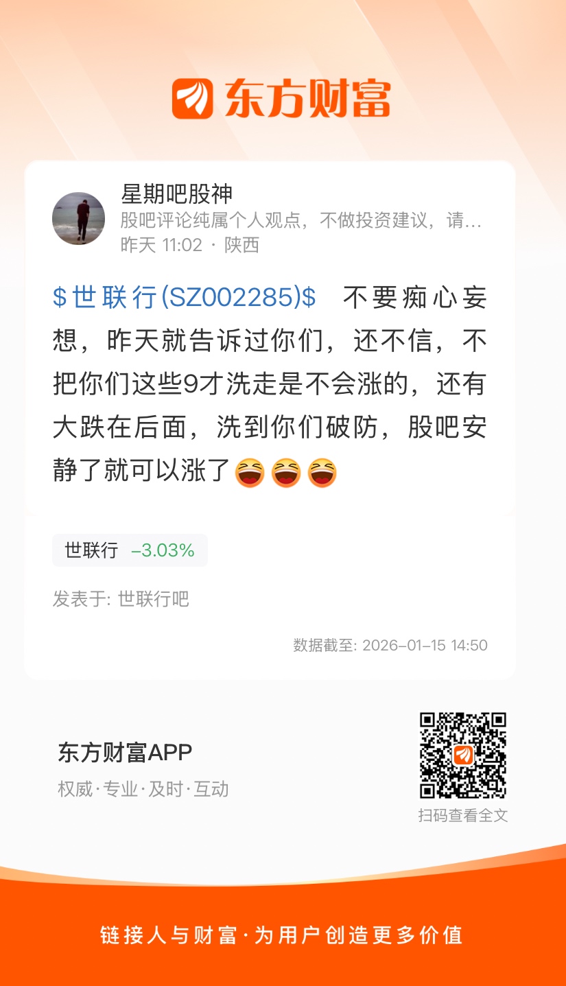 $世联行(SZ002285)$ 不要痴心妄想,昨天就告诉过你们,还不信,不把你们这些9才洗走是不会涨的,还有大跌在后面,洗到你们破防,股吧安静了就可以涨了