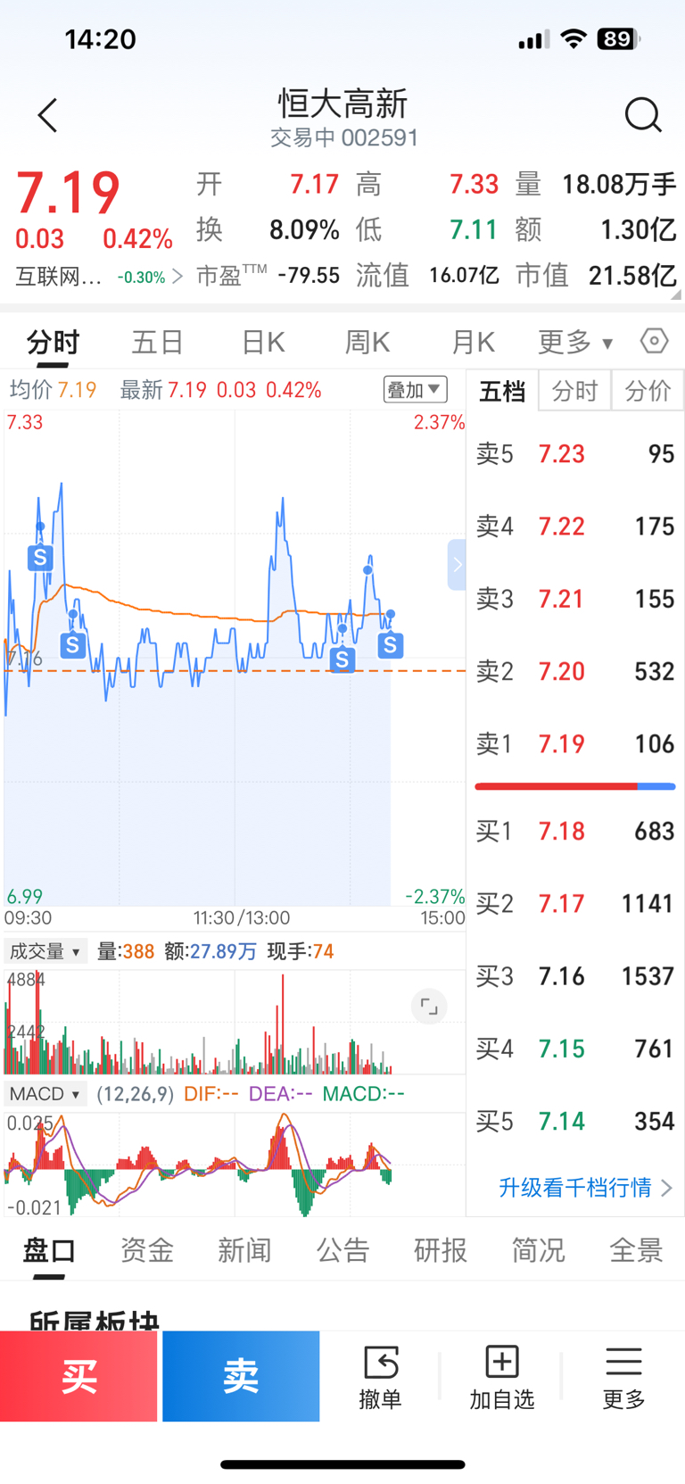幸亏昨天留了100股,今天加回来3层仓位