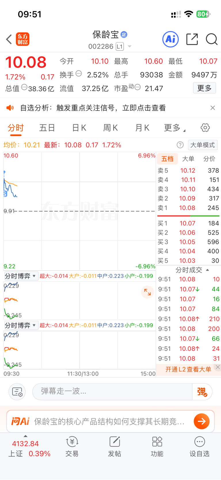 $保龄宝(SZ002286)$ 昨天进的,博个短线走了。目前趋势不错的,但是我没有耐心,我是超短线