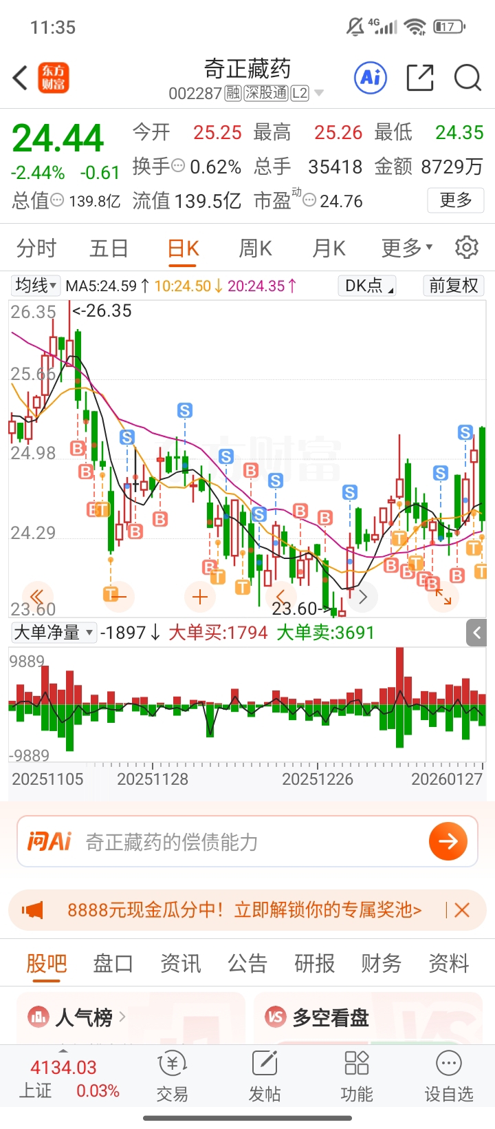$奇正藏药(SZ002287)$ 各位老板 24.6的本. 你使劲的砸