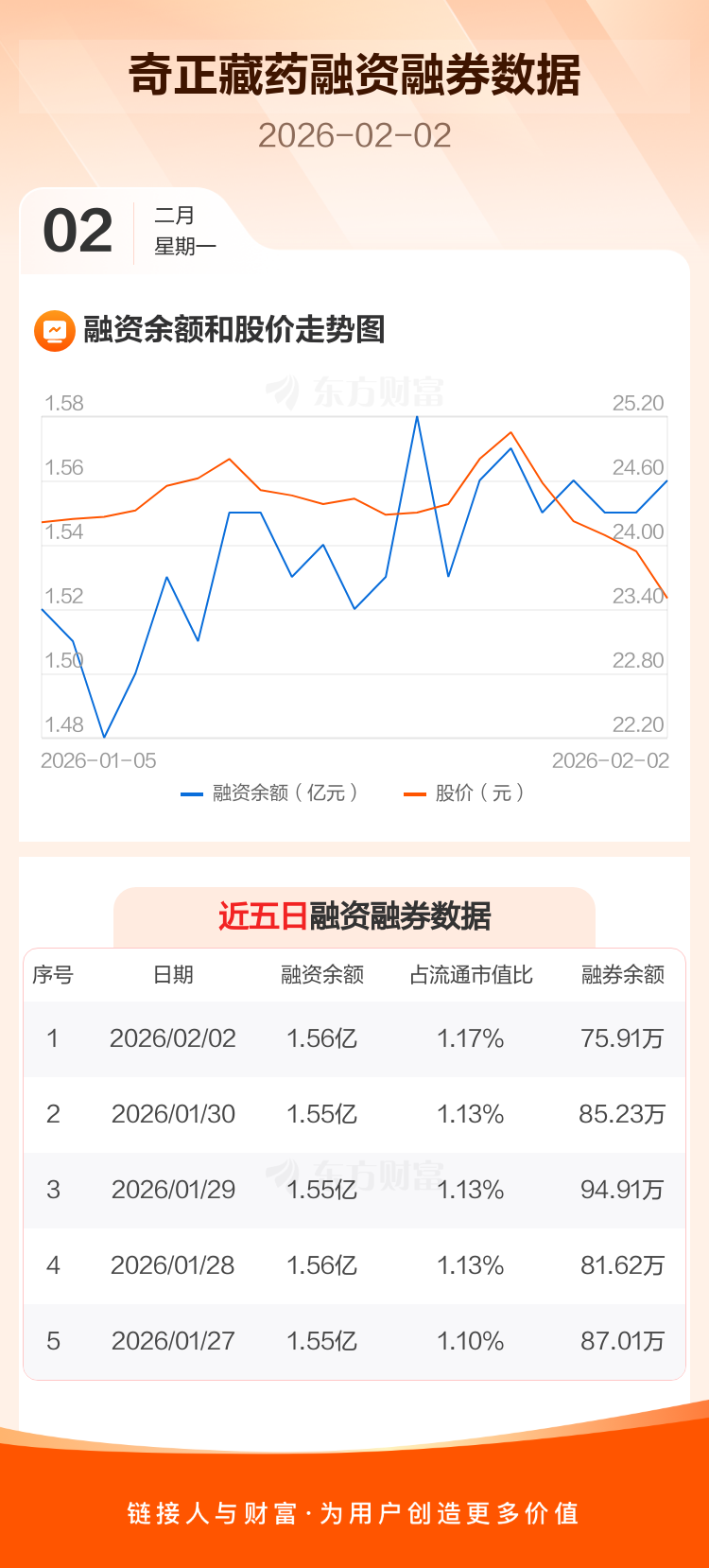 交易所最新数据显示,奇正藏药于2026年2月2日获融资买入719.07万元,融资偿还577.63万元,当日融资净买入141.44万元。目前,该股融资余额1.56亿,占流通市值比例为1.17%。