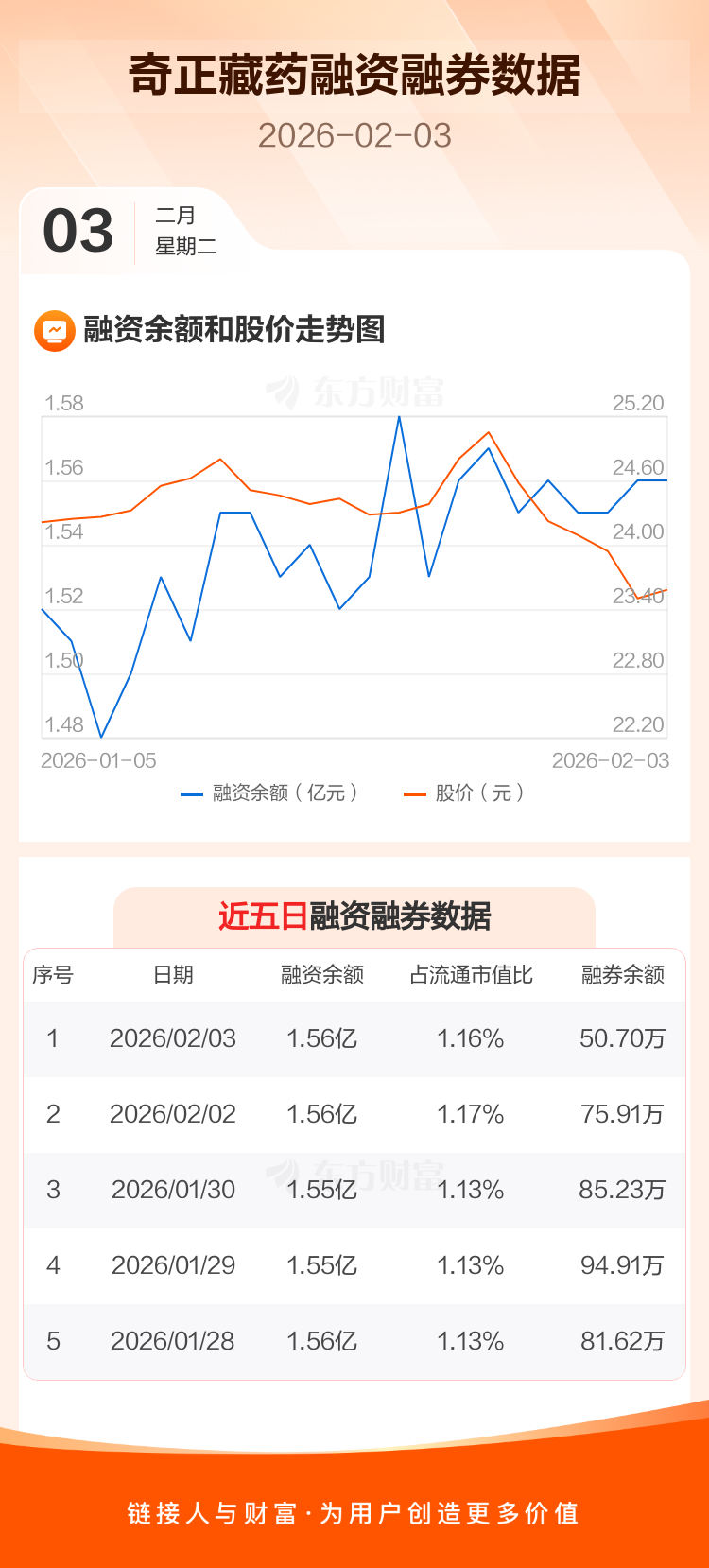交易所最新数据显示,奇正藏药于2026年2月3日获融资买入406.15万元,融资偿还453.34万元,当日融资净偿还47.19万元。目前,该股融资余额1.56亿,占流通市值比例为1.16%。