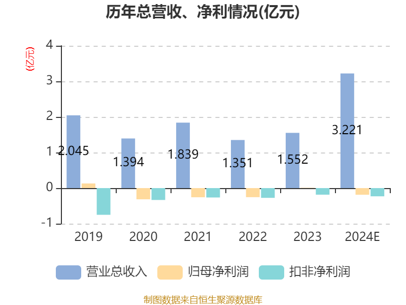 中证智能财讯 ST宇顺(002289)1月24日晚间披露2024年度业绩预告,预计2024年实现营业收入3.12亿元至3.32亿元;归母净利润亏损1500万元至2230万元,上年同期盈利96.44万元;扣非净利润亏损1941万元至2671万元,上年同期亏损1847.8万元;基本每股收益-0.0535元/股至-0.0796元/股。以1月24日收盘价计算,ST宇顺目前市盈率(TTM)约为-47.38倍至-70.44倍,市净率(LF)约4.55倍,市销率(TTM)约3.28倍。
