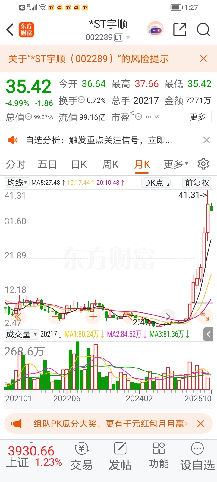 $*ST宇顺(SZ002289)$ 正常调整洗去不坚定筹码。抓紧低买机会,下一步冲百元大关。