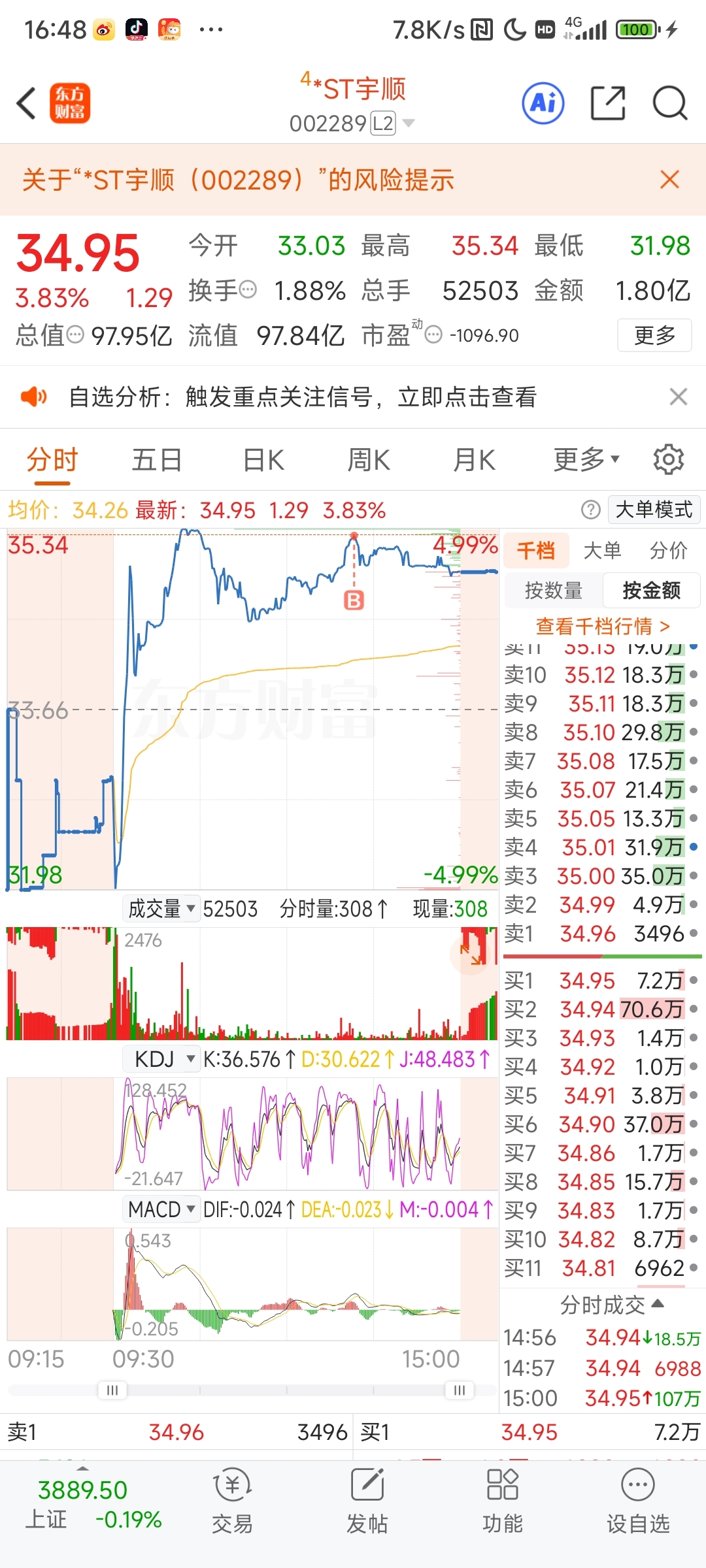 $*ST宇顺(SZ002289)$ 挂涨停价买的,结果不到涨停价就给我买进来了,不知道是福是祸,反正我买啥啥跌停,买啥啥炸板。