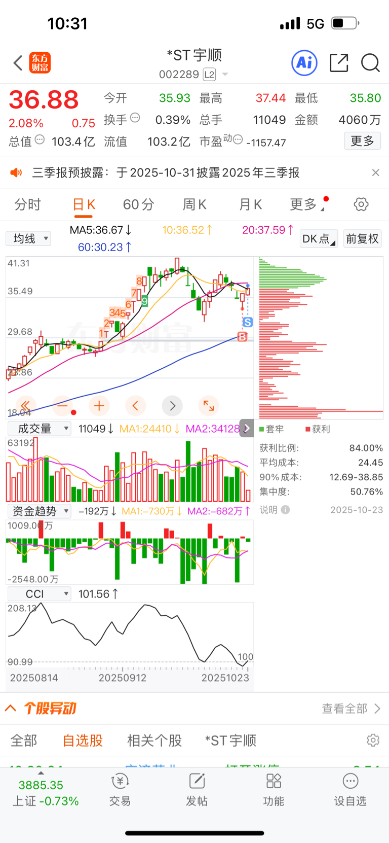 $*ST宇顺(SZ002289)$ 玩正股一直亏,也就玩st股才赚得到钱