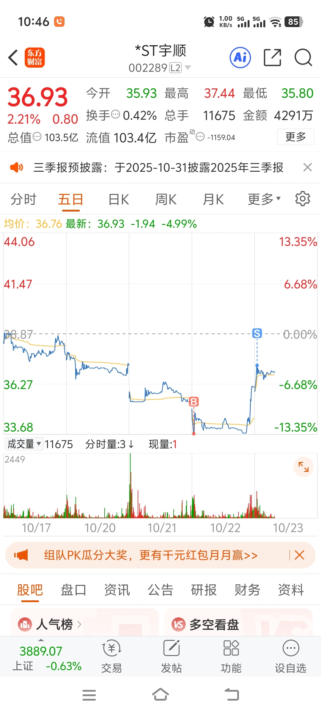 $*ST宇顺(SZ002289)$ 谢谢宇哥