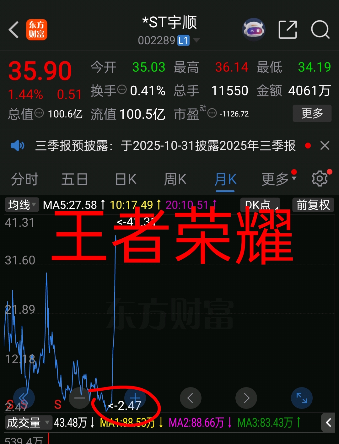 $*ST宇顺(SZ002289)$ 王者荣耀。。如假包换。。