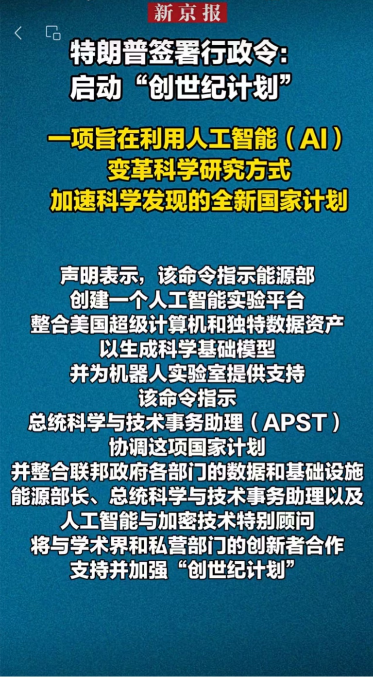 漂亮国已经全国总动员,ZT行政令启动创世纪计划了。前天说的不解释的主权算力,现在真的不用解释了。未来这必要性已经超过核W了,因为是各个层面的刚需了,科研、医疗、出行、随身等等都必须得有。A股市场参与打造算力的各股的“势”能,直接堪当为国天花板了。