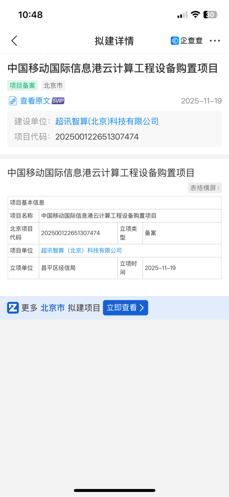 这家9月新成立的公司在11月直接拿下了中国移动国际信息港云计算的工程设备购置项目。