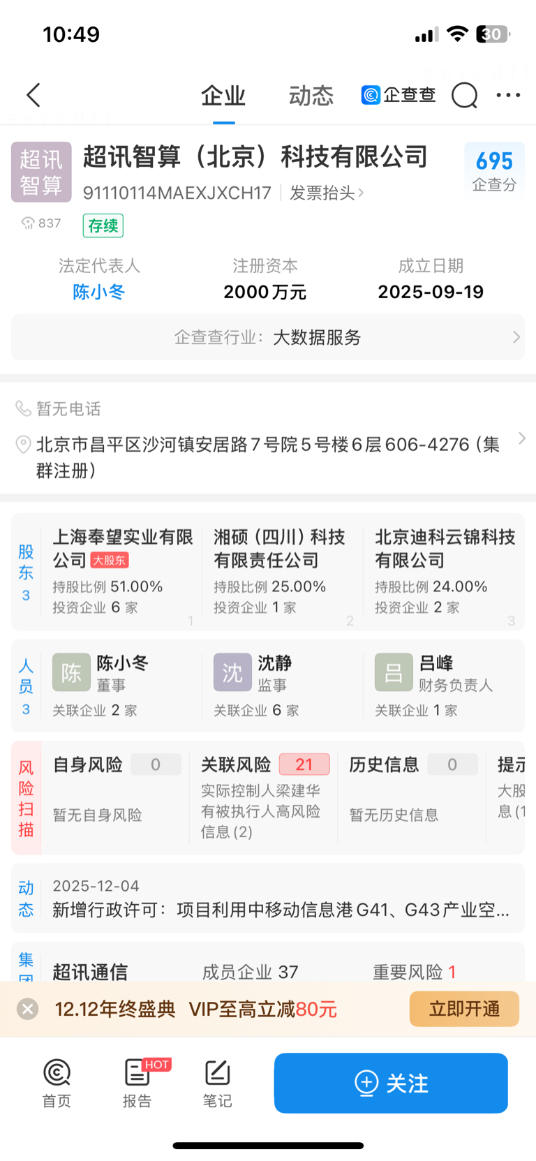 $*ST宇顺(SZ002289)$ 工商资料显示,奉望刚刚拿下了超讯智算的51%股份。