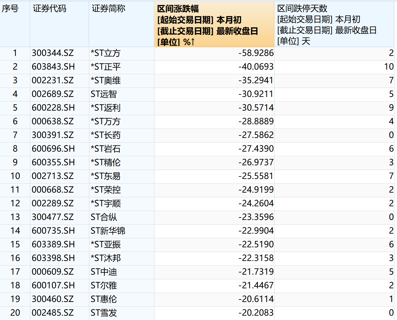 看看数据就明白了,整个ST板块这个月都在跌,不是哪一家的问题。