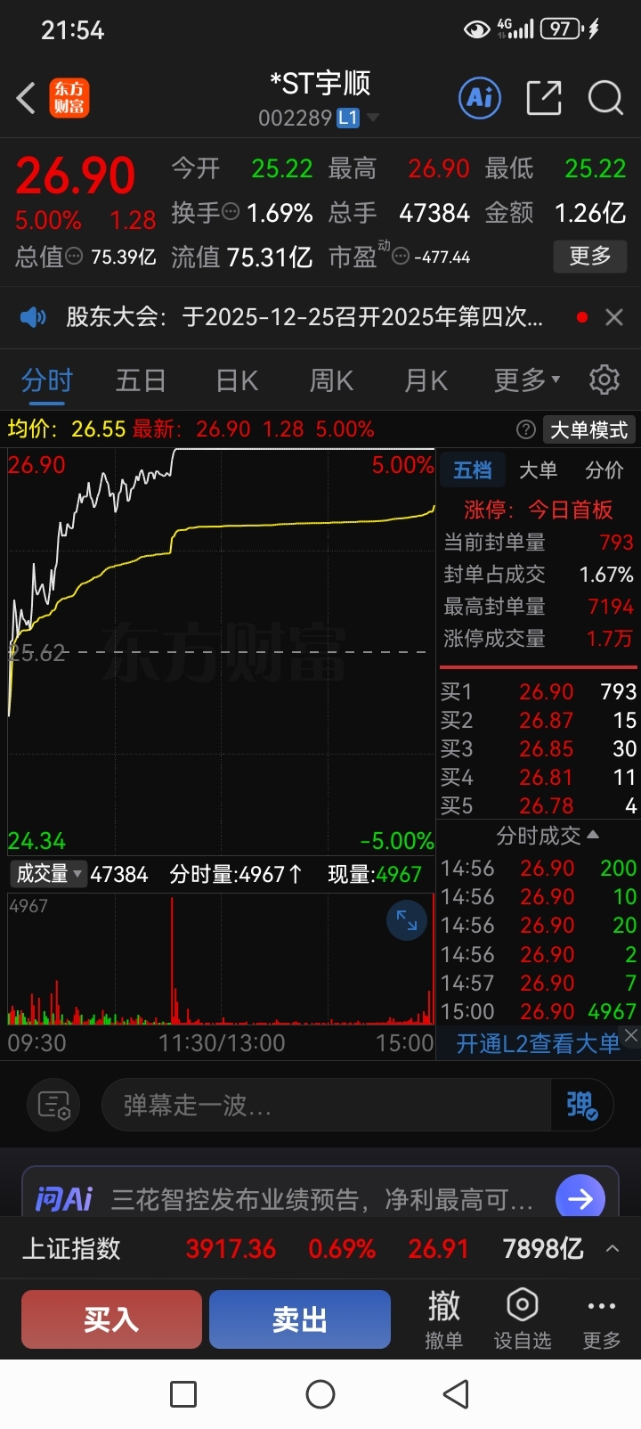 $*ST宇顺(SZ002289)$ 为了均价上翘,补量