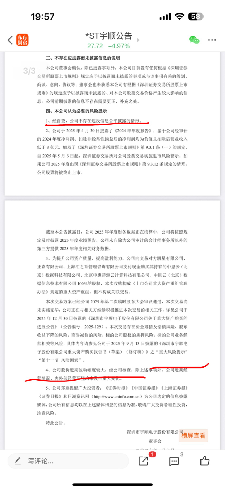 $*ST宇顺(SZ002289)$ 公告解读,啥事没有三个地板,你也是牛逼