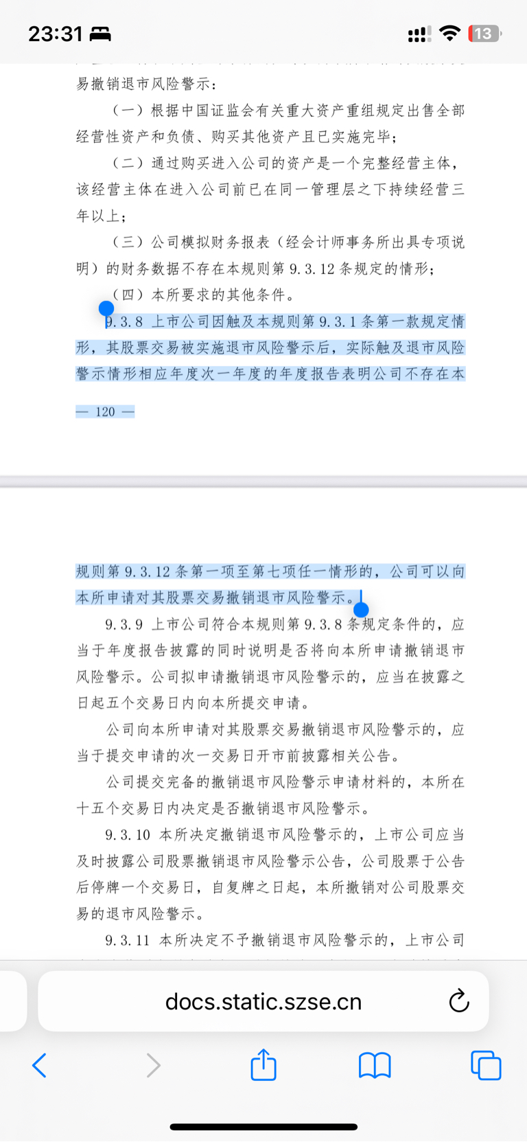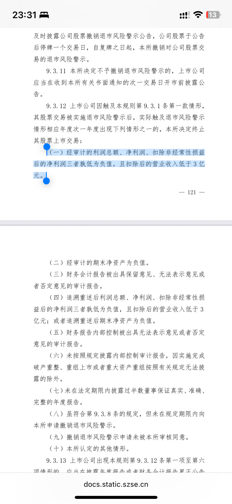 $*ST宇顺(SZ002289)$ 呵呵,深交所股票上市规则,只要不触及9.3.12,就可以申请摘帽。9.3.12第一条有两个要件:利润为负,且收入小于3亿。目前收入四亿,即可申请摘帽,无关盈利或亏损与否。此外,如果成功实施重大资产重组,也可申请摘帽。此条不受审计年报周期限制。