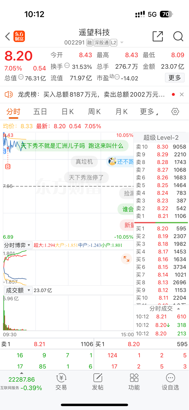 $遥望科技(SZ002291)$ 用图说话,没有利润的今天就别进去接刀子了,早上开盘全卖,后面接了一小半,剩下的等等,现在行情不是国庆那时候,现金为王