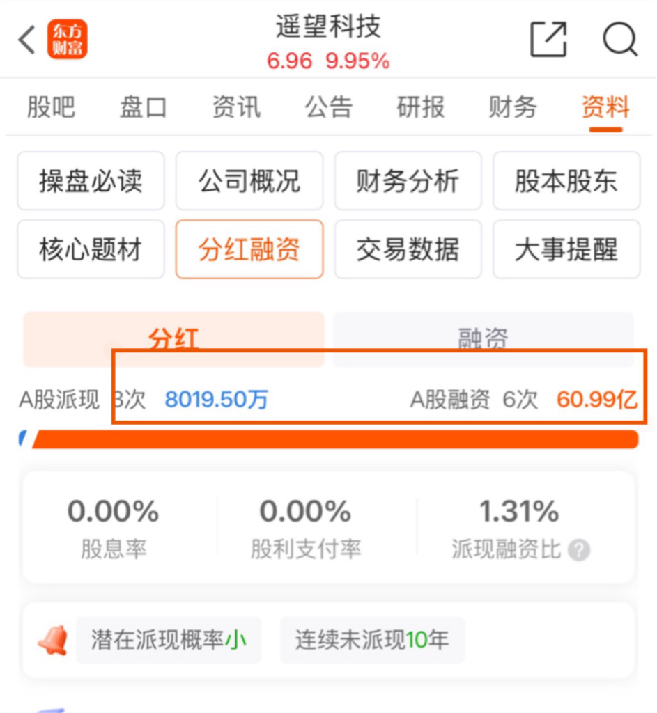 $遥望科技(SZ002291)$ 上市至今融资61亿,分红仅8000万,名副其实的上市圈钱的企业。