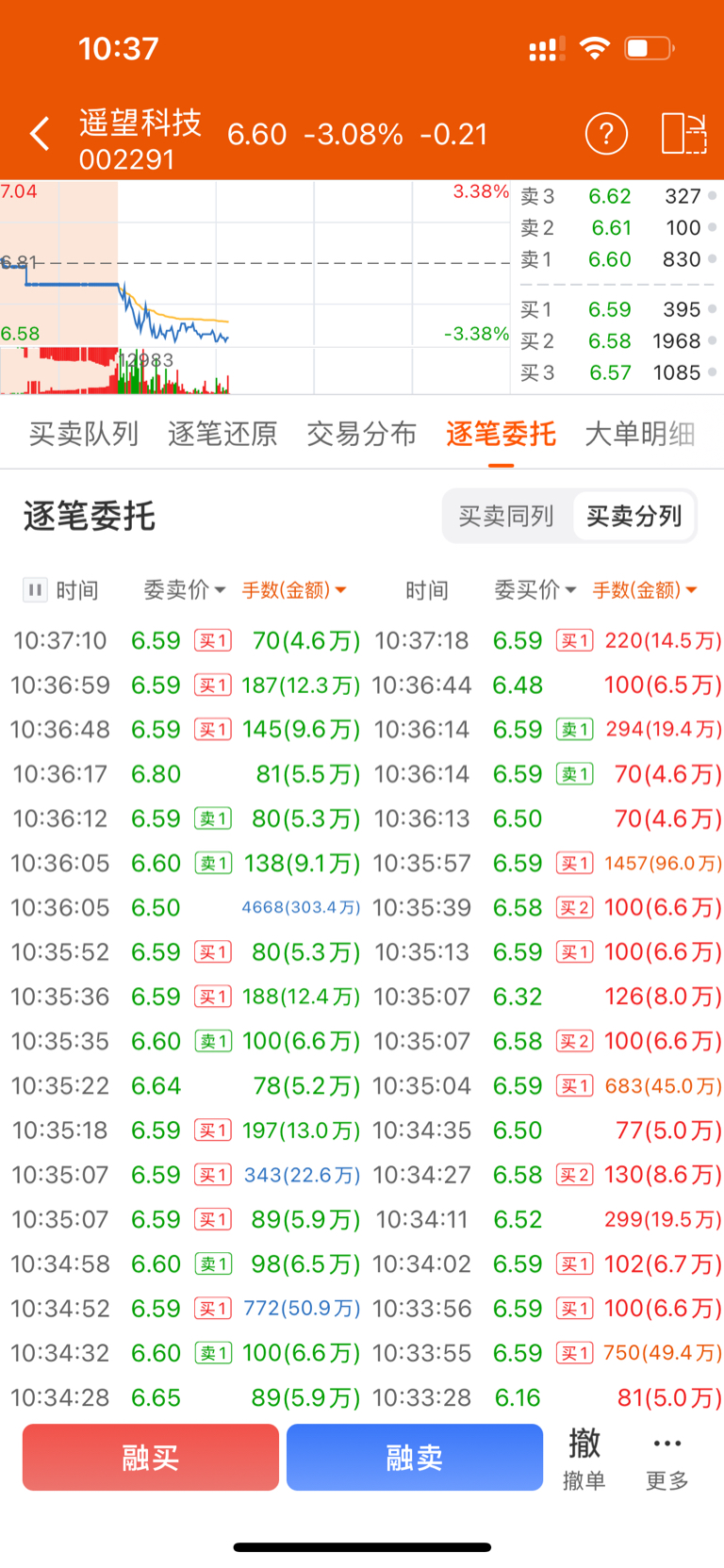 $遥望科技(SZ002291)$ 一下砸了4668手,直接托单给全部吃完