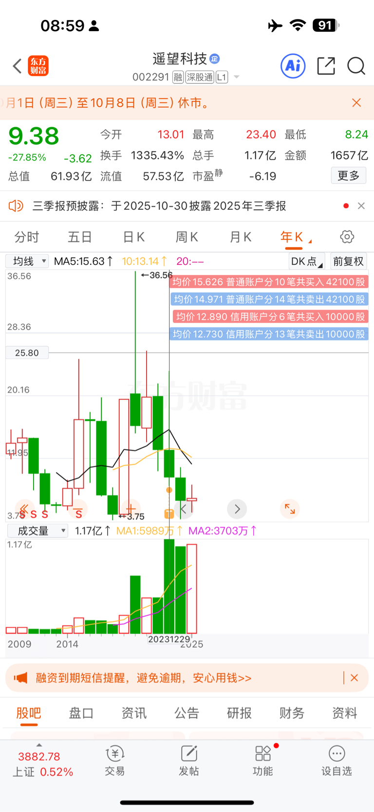 $遥望科技(SZ002291)$ 一年不见跌了这么多了呀