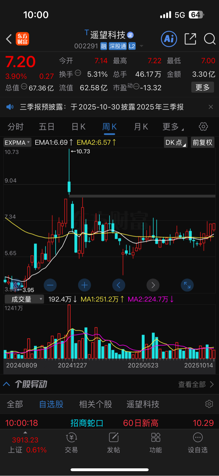 $遥望科技(SZ002291)$ 君不见补缺口去了?昨天买了吗?