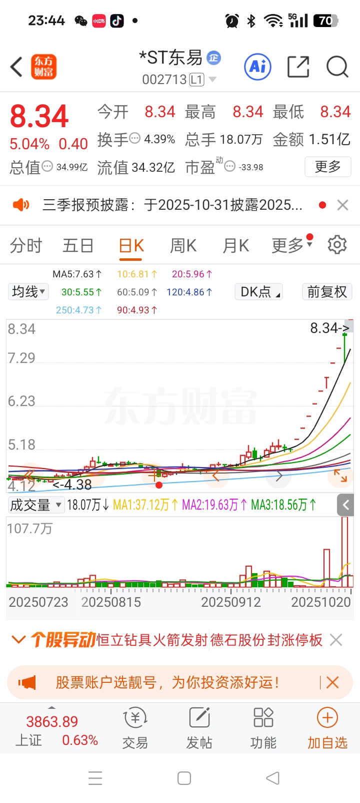 $遥望科技(SZ002291)$ 去看看ST东易,净资产—2.73元,连续亏损几年了,股价连续10个一字板翻倍,如果遥望科技真的ST了,股价早就涨上去了