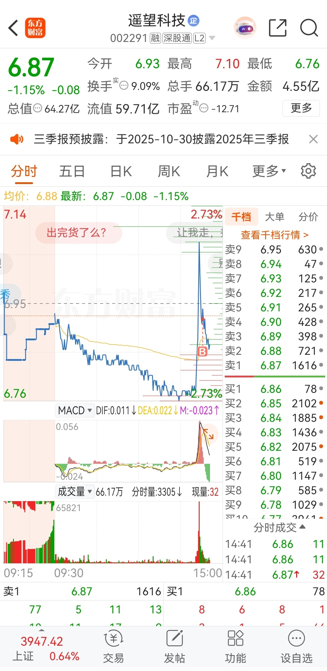 $遥望科技(SZ002291)$ 追高了