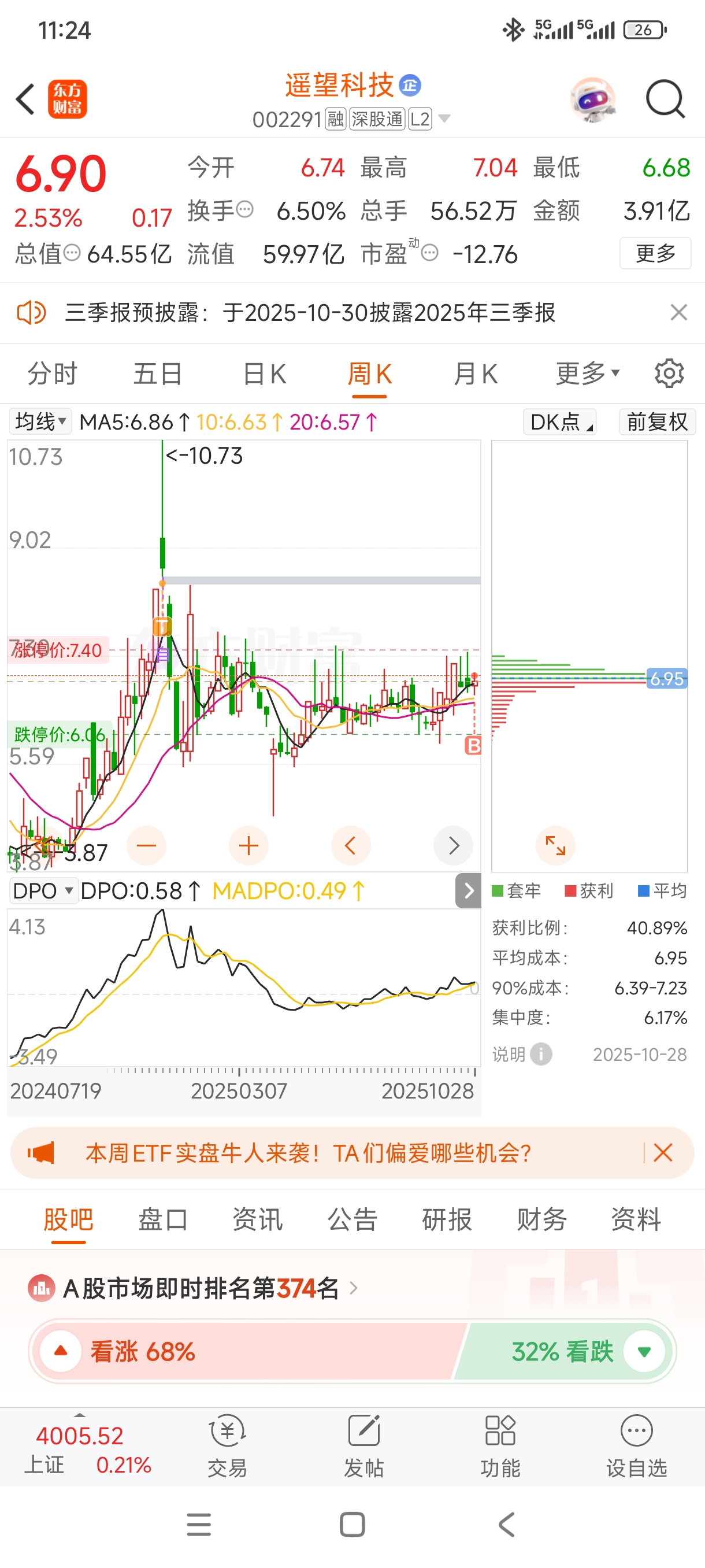$遥望科技(SZ002291)$ 9块10块我都敢拿,别说你现在6块7块了,这一次我一定要把失去的全部拿回来,有本事给我来两个跌停