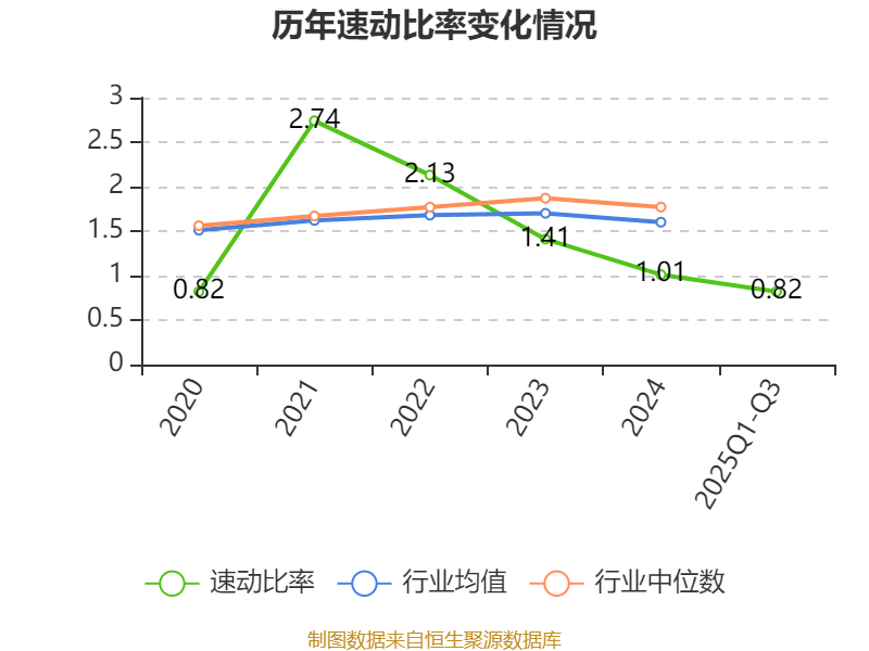 2025年前三季度,公司流动比率为1.02,速动比率为0.82。